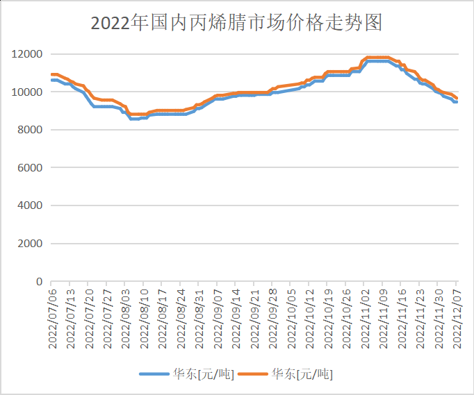 Այս փուլում ակրիլոնիտրիլի գնի անկման անմիջական պատճառը մատակարարման աճն է՝ պայմանավորված կայանի վերագործարկմամբ և բեռնվածության ավելացմամբ, մինչդեռ գործարանի ոգևորության խթանման անմիջական պատճառը արտադրական շահույթի ընդհանուր բարելավումն է: Առաջարկի, պահանջարկի և արժեքի տրամաբանությունը շուկայում փոխազդում է միմյանց հետ և պտտվում է անվերջ: Նոյեմբերի առաջին տասնօրյակում ակրիլոնիտրիլի գինը հասավ գագաթնակետին՝ 11600 յուան/տոննա, մինչդեռ արդյունաբերական հզորությունների օգտագործման մակարդակը կազմում էր 70%-ից պակաս: Հետագայում, երբ հզորությունների օգտագործման մակարդակը աստիճանաբար աճեց մինչև ավելի քան 80%, ակրիլոնիտրիլի գինը արագորեն ընկավ՝ հասնելով 10000 յուանից պակասի: